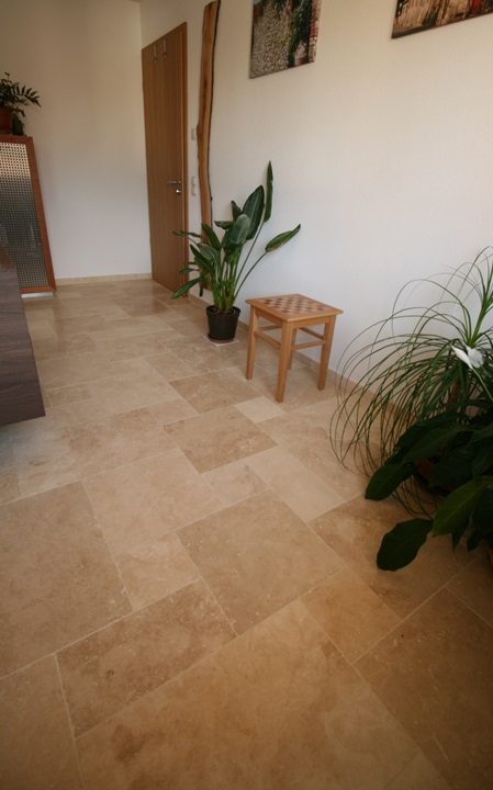Travertin in verschiedenen Farben und Größen